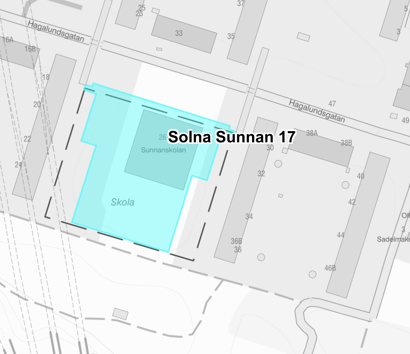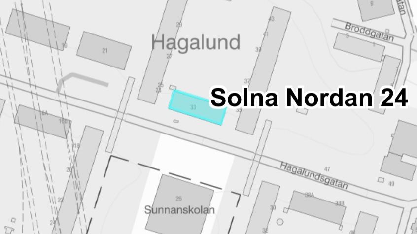 Solna är Sveriges tredje minsta kommun till ytan, med en landareal på endast 20 km². Befolkningsmässigt är Solna landets 27:e största kommun. Hagalund en av åtta stadsdelar i Solna kommun. Hagalund hade 8 898 invånare (år 2013), vilket utgör 12,2 procent av Solna kommuns totala invånarantal.Bebyggelsen utgörs huvudsakligen av bostäder, med åtta blåfärgade höghus som främsta kännetecken. Byggnaderna är 100 meter långa och 14 våningar höga. Husen stod färdiga 1973,